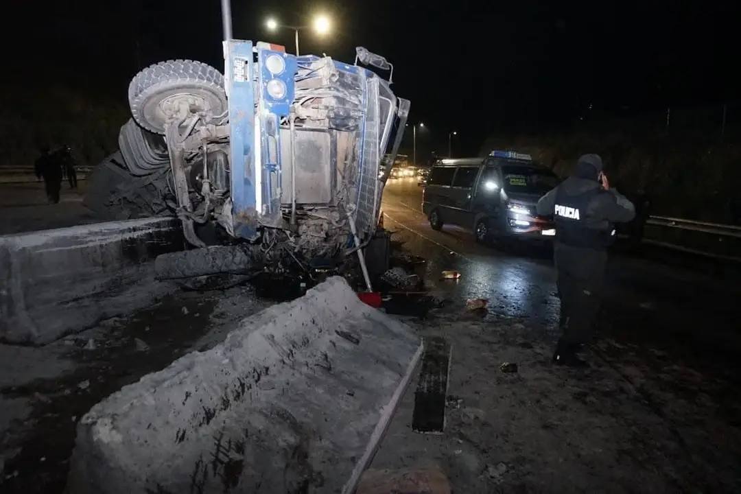El camión impactó contra los bloques que dividen los carriles y terminó cruzando al lado contrario, donde chocó casi de frente con un minibús que se dirigía hacia la ciudad de El Alto con 15 pasajeros a bordo.