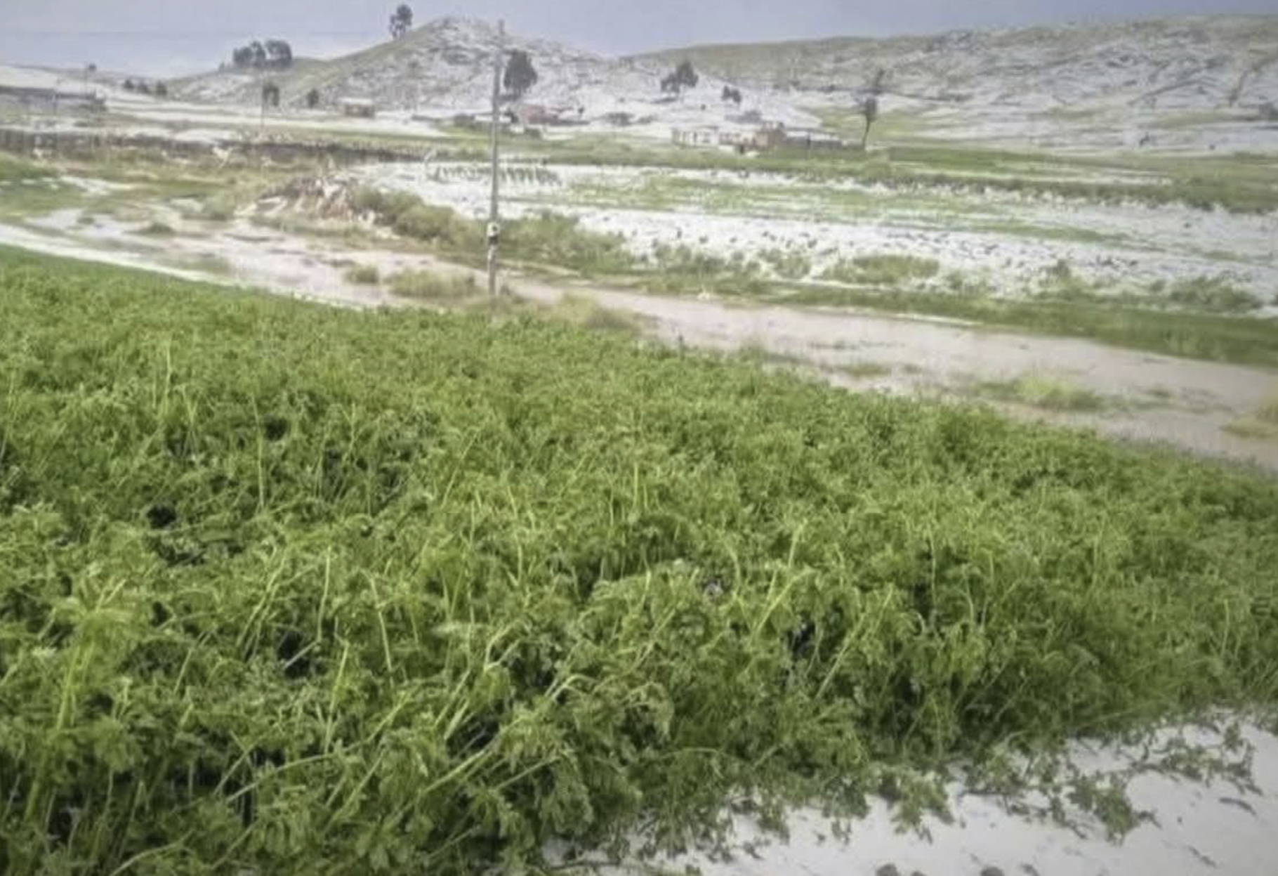 Una intensa granizada sorprendió al municipio de Huarina, dejó pérdidas y daños en la producción agrícola y la muerte de animales.