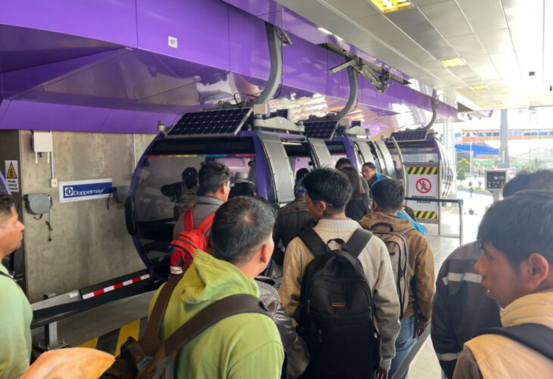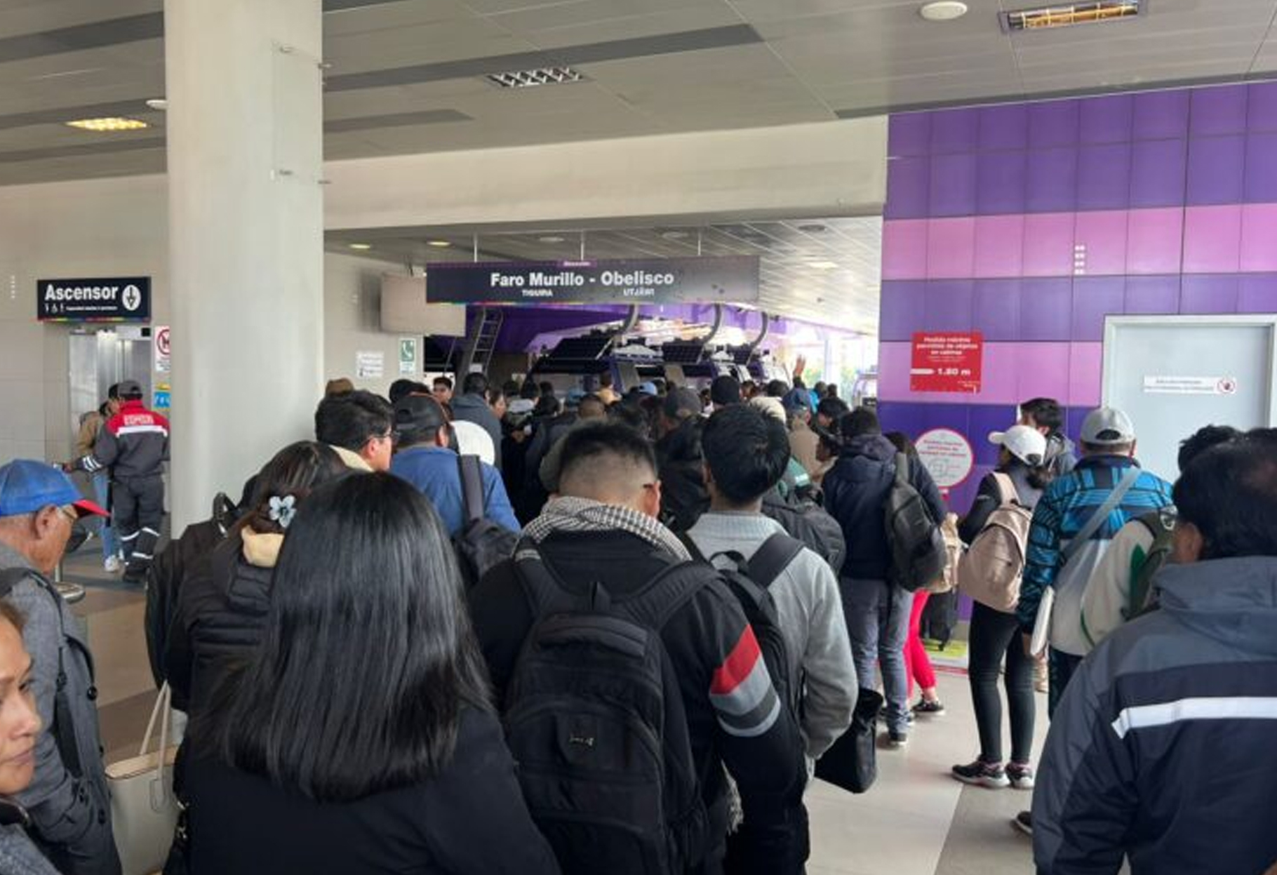 Las largas filas en estaciones como la Línea Morada del teleférico reflejan la desesperación de cientos de usuarios que, ante la escasez de minibuses y el cierre de vías, se ven obligados a recurrir al sistema por cable como única alternativa de movilidad.
