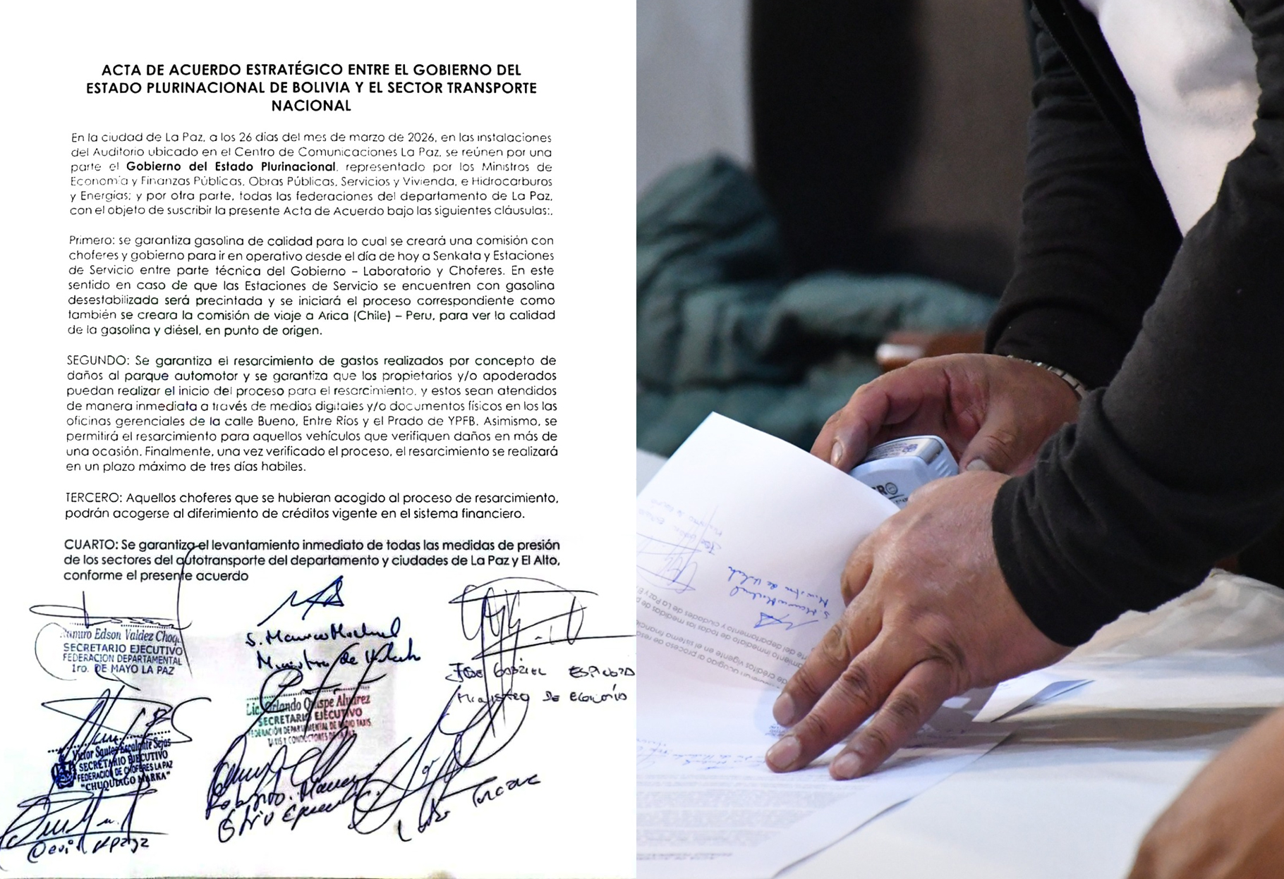 Finalmente, se determinó que los transportistas que accedan a estos procesos podrán beneficiarse del diferimiento de créditos vigente en el sistema financiero. Ambas partes garantizaron el levantamiento inmediato de todas las medidas de presión en La Paz y El Alto, mientras el Gobierno reiteró su disposición al diálogo con distintos sectores para evitar futuros conflictos
