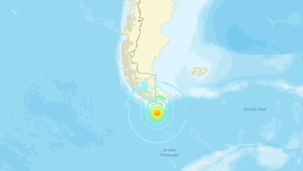 El foco sísmico estuvo localizado a 10 km de profundidad y el epicentro estuvo ubicado a 219 kilómetros de Ushuaia, Argentina, y a 438 kilómetros de Punta Arenas, Chile.
