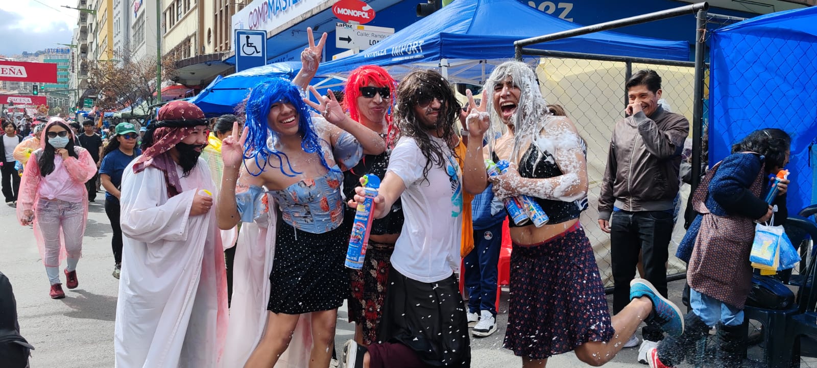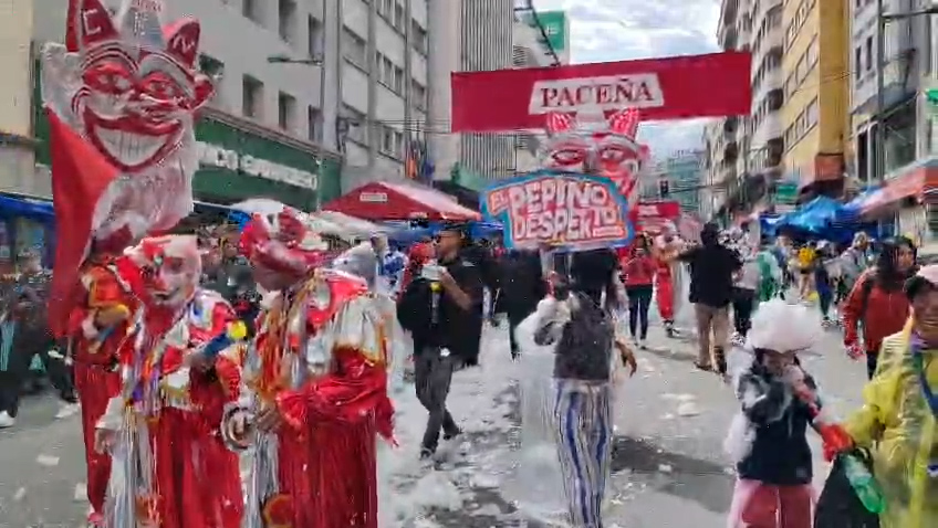 Un recorrió las principales avenidas del centro paceño, miles de espectadores que también se rindieron al juego con espuma y chorros de agua que intercambiaron con los participantes en el desfile.