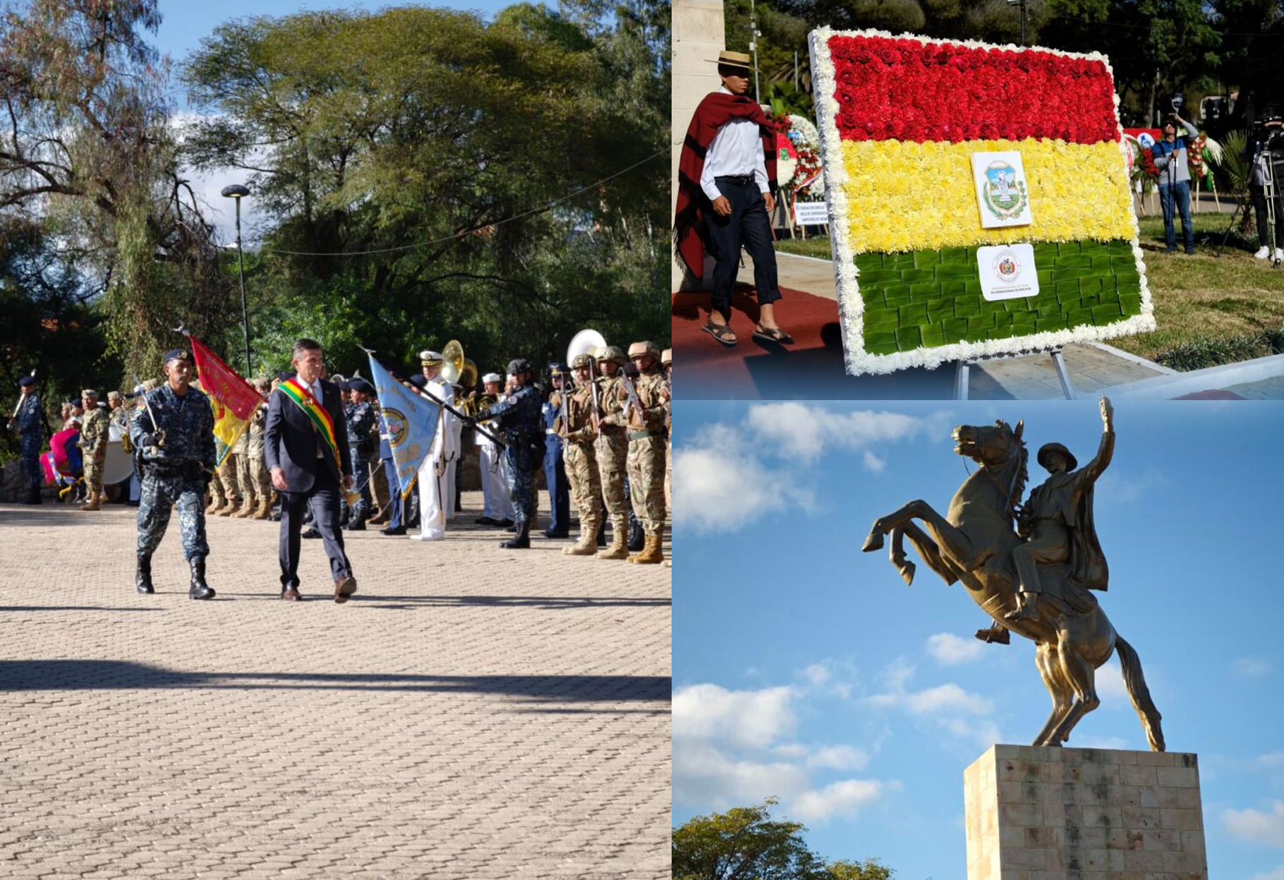 El acto central se desarrolló en el parque Mirador Héroes de la Independencia, donde el jefe de Estado izó la bandera nacional y junto a los presentes entonó el himno de Bolivia. Posteriormente, se celebró la tradicional misa del tedeum, que dio un marco religioso y espiritual a la conmemoración.